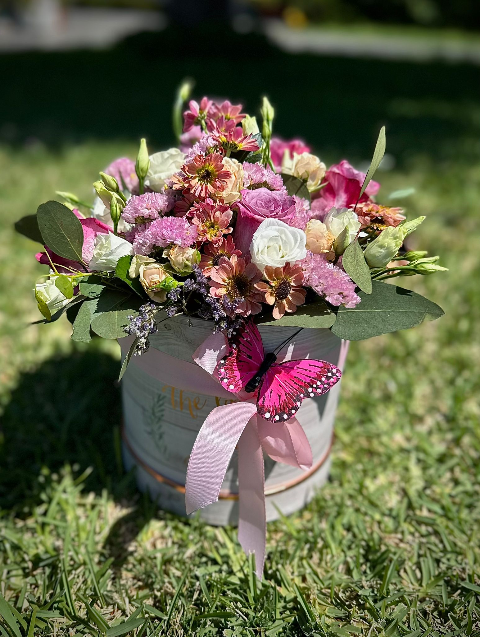 Box campestre com flor variada em tons sortidos.